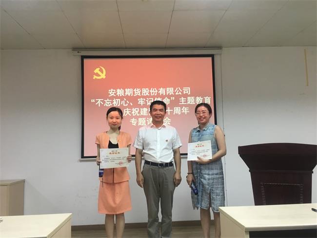 為深入開展“不忘初心、牢記使命”主題教育暨慶祝建國七十周年,學習貫徹習近平新時代中國特色社會主義思想,讀原著、學原文、悟原理,8月23日,安糧期貨黨支部、團支部及工會聯合開展“不忘初心、牢記使命”主題教育暨慶祝建國七十周年專題讀書會。讀書會由公司投資咨詢部李雨馨主持,公司黨支部書記汪勇帶領公司高管為讀書會擔任評委,全體黨員、入黨積極分子、共青團員、工會委員等參加。